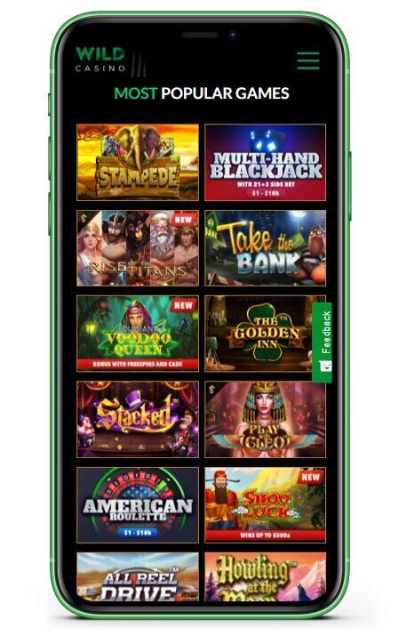 | Wild Casino | Betsoft | Slots, Video Poker, Table Games, Blackjack, Live Dealer Games | Live dealer games may take longer to load on mobile devices |